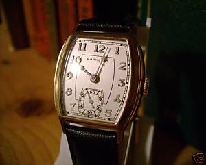 1936 marked a departure from Hamilton’s strict use of rectangular cases. Watches made during this period included the Dixon, Drake, Lawrence, Mason, Morley, Scott, Turner and Watson. Hamilton also introduced the 980 movement in 1936.