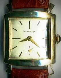 This is a pre-1955 Gents gold filled wristwatch. They were one of the first with a stainless steel back. Movement is caliber 730 with 17 jewels and damask detailing. Hamilton reverted to their classic look with this model and then started to use the different “H” logo.