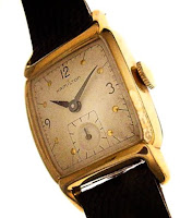 Hamilton listed this watch in their 1955 catalog as 10K yellow gold filled with a stainless steel back. Black numerals and yellow gold dots. This is a mid-century through back retro watch. Originally priced below the automatics.