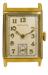 Hamilton’s produced the Taylor with sweep back lugs. The company produced other models with this Art Deco design including the Pierre, Prescott and Ellsworth. In Europe the Art Deco period ended in 1929, however, it continued until 1939 in the US.