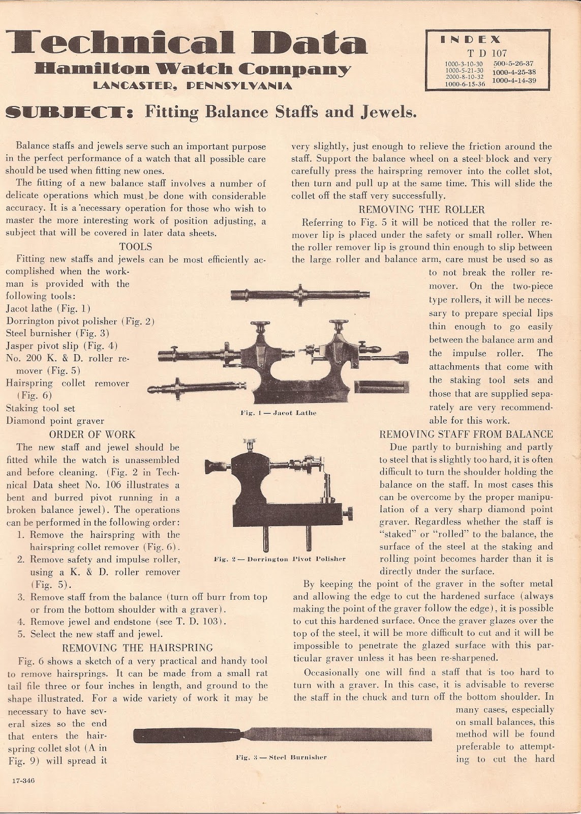 This discussion is the seventh in a series of Technical Data Sheets published by the Hamilton Watch Company for all Hamilton dealers. It is perhaps needless to add that, upon completion, the series will form a reference book of great value to all jewelers interested in watch repairing.